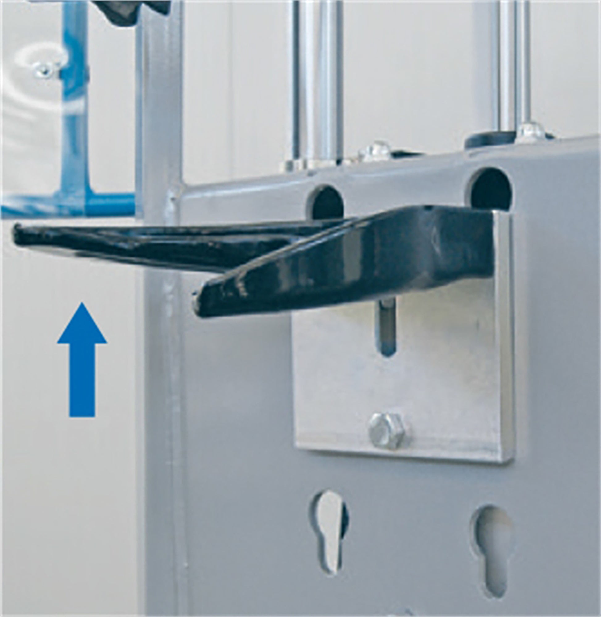 Mirror for viewing from above makes the piston rod easier to position during installation.