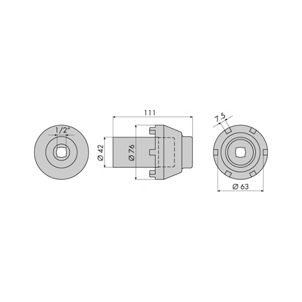 • Dimensions: 6 teeth - tooth width 7.5 mm - inner Ø 63 mm